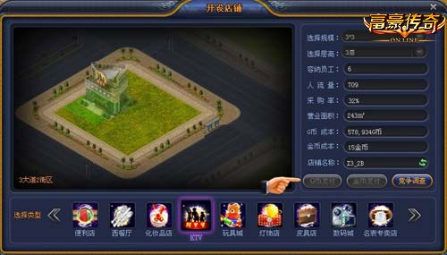 店铺的规模与行业选择。公司15级以下时店铺的最大营业面积会受到限制,因此没必要开太大的店铺。比较经济的店铺规模是在一块街区开三家3*3的4层店铺。为什么不是四家?要为设施留位置的哟!