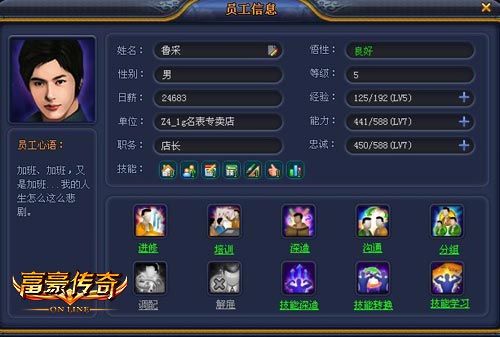 店长会提供非常强大的加成,无论是他的等级还是技能,都将为店铺带来更高的营业额。他是这个阶段员工培养的重点。鉴定过店长的悟性后,一般都可提升到4~5级,运气好的也能学到几个职业技能了。我们需要通过技能转换将他的职业技能转换为营业技能,如果有多余的银币的话还可以进行技能深造。每获得一个新的营业技能,或原有技能每提升一级,店铺的经营加成提升20%。